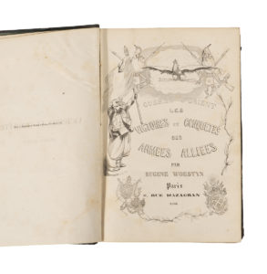 RUSSIE]. WOESTYN (Eugène). Guerres d'Orient. Les victoires et conquêtes des armée alliées. Paris, 16 Rue Mazagran, 1856. Grand in-8°, demi-basane bleu nuit, dos lisse orné de rocailles dorées et deux aigles impériales (reliure de l'époque)....