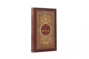 VERNE (Jules). Le Docteur Ox. [Suivi de :] Maitre Zacharius, Un hivernage dans les glaces, Un drame dans les airs. Paris, J. Hetzel et Cie, s.d. Grand in-8, percaline rouge vermillon, plat sup. orné aux initiales dorées, tranches dorées (reliure...