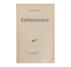 MALRAUX (André). Les Antimémoires. Paris, Nrf, 1967. In-8°, basane brune, dos lisse orné (reliure moderne). Dos et coupes épidermés. Edition originale.