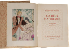 MUSSET (Alfred de). Oeuvres. Paris, Au Moulin de Pen-Mur, 1949. 12 volumes in-8, en feuilles sous chemises et emboitage (reliure de l'éditeur. Emboitage un peu passé ; des rousseurs. Illustrations couleurs de Brunellesci.