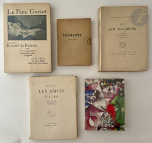 [LOTS DE LIVRES DIVERS]. — Lots de 17 livres dont Verlaine (Les Amies. 1921), Foujita (Les Huit renommées), Balzac (Le Père Goriot), Marc Chagall, Char (La Nuit talismanique), Anatole France, etc. — Soit 17 volumes.