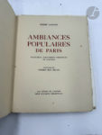 – LAGACHE (Pierre). Ambiances populaires de Paris. Préface de Pierre Mac-Orlan. S.l. : Aux dépens de l'artiste pour quelques bibliophiles, [1944]. —In-4, en feuilles, couverture rempliée, chemise et étui de l'éditeur.