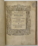 Le dernier ouvrage du recueil est une édition originale rarissime des « Madrigaux d'Arsilia » d'Arsenio Arena, dédiée à Hieronimo Poncino. Imprimée à Bergame, cette œuvre se distingue par un élégant encadrement Renaissance gravé sur bois au titre, ainsi que des encadrements typographiques pour chacun des madrigaux. À ce jour, il s'agit du seul exemplaire connu, n'étant référencé dans aucune bibliothèque publique ni cité par aucun bibliographe.