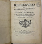ALEMBERT (D'). — Recherches sur différens points importans du systême du monde. — Paris : David l'aîné, 1754-1756. — 3 volumes in-4, veau marbré, dos à nerfs orné, tranches rouges (reliure de l'époque).