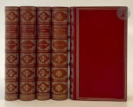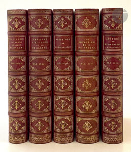BALZAC (Jean-Louis Guez de). — [Œuvres]. — Leyde, Amsterdam : Elzevier, 1651-1664. — 5 ouvrages en 5 volumes in-12, maroquin rouge, triple filet doré en encadrement sur les plats, dos à nerfs orné, dentelle dorée intérieure, tranches...