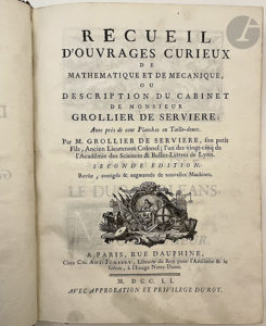 GROLLIER DE SERVIÈRE (Gaspard). — Recueil d'ouvrages curieux de mathématique et de mécanique, ou description du cabinet de Monsieur Grollier de Servière. — Seconde édition. — Revûe, corrigée & augmentée de nouvelles Machines. — Paris...
