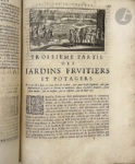 Seconde édition, en partie originale, de l'œuvre majeure de Jean-Baptiste de la Quintinie (1626-1688), avocat, jardinier et agronome français, célèbre pour avoir créé le Potager du roi à Versailles. Publiée pour la première fois en 1690 sous le titre « Instruction pour les jardins fruitiers et potagers, avec un Traité des orangers, suivi de quelques Réflexions sur l'Agriculture », cette œuvre est l'un des premiers grands traités agronomiques modernes, dans lequel l'auteur partage ses connaissances sur la culture des primeurs et la taille des arbres fruitiers.