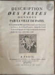 [LIVRE DE FÊTE]. — Description des festes données par la ville de Paris, à l'occasion du Mariage de Madame Louise-Elisabeth de France, & de Dom Philippe, Infant & Grand Amiral d'Espagne, les vingt-neuvième & trentième Août mil sept cent...