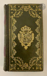 in-12, maroquin vert foncé, dentelle dorée aux petits fers et armes dorées au centre sur les plats, dos lisse orné, roulette dorée intérieure, tranches dorées, étui bordé (reliure de la fin du XVIIIe siècle).