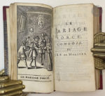 Quelques frottements sur les plats. Déchirures à la gravure du « Mariage forcé » (tome 2).