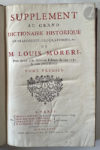 MORERI (Louis). — Le Grand dictionnaire historique ou le mélange curieux de l'Histoire sacrée et profane : qui contient en abregé l'histoire fabuleuse Des Dieux & des Heros de l'Antiquité Payenne… — Supplément au grand dictionnaire...