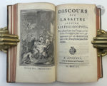 6. [COYER (Gabriel-François]. Discours sur la satyre contre les Philosophes, Représentée par une Troupe qu'un Poëte Philosophe fait vivre, & approuvée par un Académicien qui a des Philosophes pour Collègues. Athènes : chez le Libraire anti-Philosophe, 1760. — Frontispice, 91 pp.