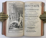 9. [CAILLEAU (André-Charles)]. Les Originaux, ou les fourbes punis, parodie, scène par scène, des prétendus philosophes, comédie nouvelle, En trois Actes & en Vers. P. M.** d'aucune Académie ni de Société. Nancy, 1760. — Frontispice, 62 pp., (1 f. blanc).