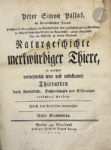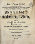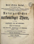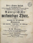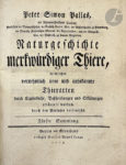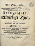 Cette édition constitue l'originale allemande de l'ouvrage publié en latin entre 1767 et 1774 sous le titre « Spicilegia zoologica » par le philologue, historien et botaniste allemand Peter Simon Pallas (1741-1811). Elle a été traduite par le médecin et entomologiste Ernst Gottfried Baldinger (1738-1804), ainsi que par le naturaliste Johann Christian Polycarp Erxleben (1744-1777), et par l'auteur lui-même.