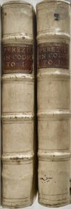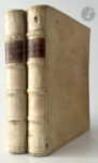 Trous de vers, sans gravité, aux mors et au dos du second volume. Rousseurs éparses. Petites galeries de vers dans la marge inférieure des premiers feuillets du premier volume. Quelques mouillures claires.