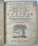 Cet ouvrage, composé par le jurisconsulte espagnol Antonio Perez (1583-1672), professeur de droit à Louvain, contient les leçons de ce dernier sur les 12 livres du Code de Justinien, dans lesquelles il explique toutes les lois qu'ils contiennent, en les éclairant avec celles de son temps.
