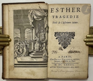 RACINE (Jean). — Esther. — Tragédie Tirée de l'Escriture Sainte. — Paris : Denys Thierry, 1689. — In-12, veau brun, dos à nerfs orné (reliure de l'époque). — Première édition in-12, parue la même année que l'originale in-4.