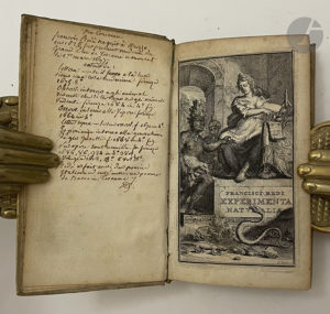 REDI (Francesco). — Experimenta circa res diversas naturales, spectatim illas, Quæ ex Indiis adferuntur. — Ex Italico Latinitate donata. — Amsterdam : Andreas Frisius, 1675. — 4 parties en un volume in-12, parchemin rigide, dos lisse,...