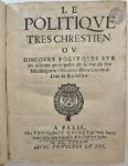 [VILLAREAL (Manuel Fernandes de)]. — Le Politique tres chrestien. Ou discours politiques sur les actions principales de la vie de feu Monseigneur l'Eminentissime Cardinal Duc de Richelieu. — Paris : Toussainct Quinet, 1643. — In-4, parchemin...