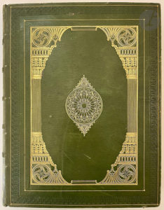 plaque à la cathédrale dorée et rosace dorée au centre sur les plats, dos à nerfs richement orné, roulette dorée intérieure, tranches dorées (Thouvenin).