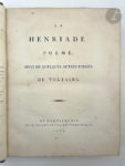 VOLTAIRE. — La Henriade, poeme, suivi de quelques autres poèmes. — [Khel] : De l'imprimerie de la Société typographique, 1789. — Grand in-4, maroquin vert, encadrement d'une roulette de palmettes à froid sertie de deux filets dorés, avec...