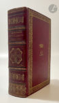 doré au centre sur les plats, dos à nerfs orné, roulette dorée intérieure, doublures et gardes de tabis bleu, tranches dorées (reliure de l'époque).