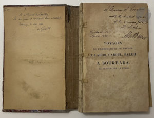 BURNES (Alexandre). — Voyages de l'embouchure de l'Indus à Lahor, Caboul, Balkh et à Boukhara ; et retour par la Perse, pendant les années 1831, 1832 et 1833. — Paris : Arthus Bertrand, 1835. — 3 volumes in-8, demi-percaline grise, dos lisse...