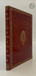 dorées au centre sur les plats, dos lisse orné, roulette dorée intérieure, doublures et gardes de soie bleue, tranches dorées (reliure de l'époque).