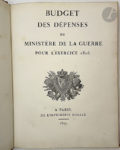 [CLERMONT-TONNERRE (Aimé Marie Gaspard)]. — Budget des dépenses du ministère de la guerre pour l'exercice 1826. — Paris : imprimerie royale, 1825. — In-4, maroquin rouge, double filet et roulette dorés en encadrement et armes royales...