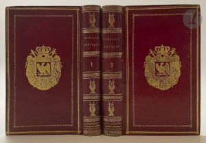 LUCET (Jean-Jacques) - ECKARD (Jean) — Hommages poétiques à Leurs Majestés Impériales et Royales sur la naissance de S. M. le roi de Rome. — Paris : imprimerie de Prudhomme fils, 1811. — 2 volumes in-8, maroquin rouge à long grain, filets...