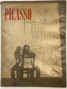 Exemplaire bien complet de la couverture de papier cristal avec le nom de Picasso imprimé en rouge.