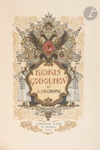 POUCHKINE (Alexandre). — Boris Godounov. — Paris : H. Piazza, [1927]. — In-8, 233 x 166 : titre, 135 pp., (4 ff. trois derniers blancs), 15 planches, couverture imprimée. Broché, couverture rempliée, étui.