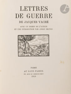 VACHÉ (Jacques). — Lettres de guerre. — Paris : Au Sans Pareil, 1919. — In-12, 190 x 140 : (4 ff. premier blanc), V pp., (1 f.), 32 pp., (4 ff. dernier blanc), couverture illustrée. Broché. Édition originale posthume publiée par André...