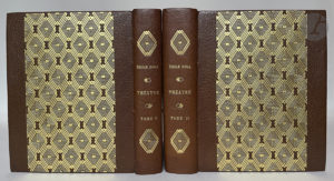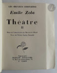 ZOLA (Émile). — Théâtre. — Notes et Commentaires de Maurice Le Blond. — Texte de l'édition Eugène Fasquelle. — Paris : François Bernouard, [1927]. — 2 volumes in-8, maroquin havane, grande bande verticale décorée de losanges dorés...