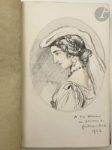 Le dessin de cet exemplaire, représente le portait de profil d'une femme dans un cadre ovale. Il est dédicacé par l'artiste à M. Allemand et daté de 1922.