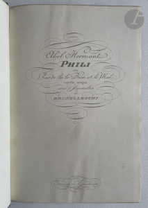 BRUNELLESCHI (Umberto) - HERMANT (Abel). — Phili ou par-delà le bien et le mal. — [Paris] : Éditions de la Guirlande, [1921]. — In-4, demi-maroquin vert à coins, dos à nerfs, tête dorée, non rogné, couverture conservée (reliure de...
