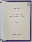 CORTOT (Jean) - STÉTIÉ (Salah). — Cinq dictées de la mélancolie. — Paris : Maeght, [2001]. — In-folio, en feuilles, couverture rempliée, emboîtage en toile violette de l'éditeur.