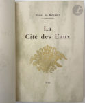 JOUAS (Charles) - RÉGNIER (Henri de). — La Cité des Eaux. — Paris : Aug. Blaizot, René Kieffer, 1912. — In-4, veau brun, roulette à froid en encadrement sur les plats, premier plat orné d'un grand décor modelé, représentant au centre un...