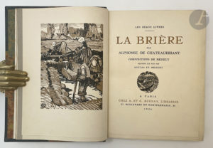 MÉHEUT (Mathurin) - CHATEAUBRIANT (Alphonse de). — La Brière. — Paris : A. et G. Mornay, 1924. — In-8, demi-maroquin vert foncé à coins, dos à nerfs, tête dorée, non rogné, couverture et dos conservés (Gruel).