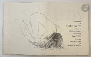 VALADIÉ (Jean-Baptiste) - LOUYS (Pierre). — Lêda. — Paris, Bièvres : Pierre de Tartas et Albin Michel, 1975. — In-folio, en feuilles, couverture rempliée, emboîtage en toile bleue de l’éditeur.