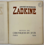 ZADKINE (Ossip) - RIDDER (André de). — Zadkine. — Paris : Éditions des Chroniques du jour, 1929. — In-4, broché, couverture rempliée.