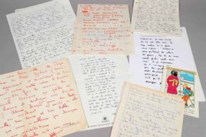 Pierre Lecuire, 2007. Manuscrit contenu dans un petit carnet oblong (11 × 16 cm), 39ff., cartonnage à la bradel recouvert de toile beige. Dans ce « Carnet romain », composé de 30 feuillets manuscrits de texte, 7 dessins originaux de François Rouan et 9 feuillets manuscrits de notes, « tentation de livre » comme l'écrit le poète dans les pages de notes finales, Pierre Lecuire retrace le « chemin de l'Italie » qu'il fit dans les années 1948, après avoir choisi Florence, l'épouse, puis Rome, vingt ans plus tard... « LE PANORAMA DE LA VIA APPIA » signe le paysage / SUR LE TIBRE est un mystère / VILLA D'ESTE est un hymne à la joie pure de l'eau, son sacre ». Ce livre ne ressemble à aucun autre dans la production du poète Pierre Lecuire, et demeure jusqu'à présent parfaitement inconnu puisque conçu à seulement 3 exemplaires, tous manuscrits, justifiés et signés par les deux artistes, dont celui que nous présentons semble le premier à être mis sur le marché. Notice biographique parue dans « Livres de Pierre Lecuire », monographie consacrée au poète par la Bibliothèque Nationale de France : « Le poète français Pierre Lecuire représente un cas sans doute unique dans la création littéraire contemporaine. Son œuvre complète entre aujourd'hui dans les collections de la Bibliothèque nationale de France où elle constitue le fonds Pierre et Mila Lecuire. « Je ne fais pas mes livres pour abriter, cacher mes poèmes. Ce ne sont ni mes alibis, ni mes retraites. Ils sont l'expression dernière, monumentale, achevée du Poème. » Poète qui a choisi la voie difficile de la fusion de son poème avec le Livre, Lecuire travaille en collaboration avec les artistes, choisis par lui, de ses livres : Nicolas de Staël, Lanskoy, Etienne Hajdu, Geneviève Asse, Charchoune, Vera Pagava, Aguayo, François Rouan, etc. Il œuvre également avec les artisans de toute création de livres : typographes (Fequet et Baudier, François Da Ros, Francis Mérat), taille-douciers (Atelier Leblanc), coloristes, papetiers. En poète et architecte du Livre, il ordonne tous les éléments, les « fondamentaux » du Livre, textes, espaces, rythmes, traits, couleurs, jusqu'à former une unité, la plus parfaite possible. La rencontre de Nicolas de Staël et de Pierre Lecuire en mars 1945 à Paris fut déterminante pour l'œuvre du jeune poète à la recherche d'une forme d'expression personnelle. »