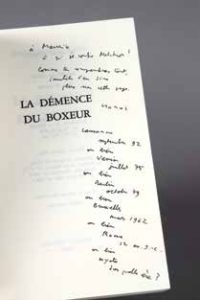 In-4 (29 × 23 cm), plein maroquin brun, plats décorés dans le style Art Déco avec incrustations de pièces de maroquin de couleurs, encadrement géométrique, dos à 5 nerfs et caissons mosaïqués, toutes tranches dorées, bel encadrement de gardes en maroquin mosaïqué brun et rouge avec frise grecque dorée et filets à froid, contre-gardes de soie brune, couvertures conservées, étui (G. Mercier). Dos très légèrement insolé, sinon parfait exemplaire. Ouvrage illustré de 36 compositions de Sylvain Sauvage gravées sur bois et en couleur par Pierre Bouchet ; ici en double état sur Japon. Un des 40 exemplaires de tête sur Japon impérial, ici avec une suite au noir sur Japon mince. Les feuillets de suite sont reliés en regard des gravures in-texte. Très bel exemplaire, grand de marges. Émouvante signature à la reliure : « G. Mercier successeur de son père, 1932 » ; Victor Mercier, magistrat, grand collectionneur de romantiques et relieur français, venait effectivement de disparaitre. « Ce petit livre d'amour antique est dédié respectueusement aux jeunes filles de la société future. »