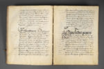 muet, trace d'encadrement et de fleurons à froid aux plats, traces de lacets (rel. frottée, piq. de vers au dos et lacune en queue, plat sup. taché avec trav. de vers ; légères traces digitales en marge). Très beau document calligraphié avec initiales ornementales, dont la première, à mi-page, comporte un dragon et les armes peintes de Ceriers. La famille de Ceriers a donné dix-sept consuls à la ville de Riom entre 1270 et 1539, et un chancelier à la sénéchaussée d'Auvergne. Jean II de Ceriers (v. 1440 - 1526), seigneur de Palerne, vicomte de la Rochebriant. écuyer, trésorier du duc Charles III, avait été déchu de sa noblesse ; fon fils Amable obtint des lettres royales de réhabilitation de noblesse, datées du 2 avril 1526, lesquelles furent entérinées par les élus de l'élection de Clermont et les consuls de la ville de Riom, au profit de son fils Antoine, le 15 novembre 1527. C'est ce procès de confirmation qui fait l'objet du présent document. Amable de Ceriers (v. 1460 - entre 1540 et 1543), seigneur de Ceriers-lès-Riom, Palerne, Gerzat, Eygurande fut l'un des élus de l'élection du bas-pays d'Auvergne et il fit construire à Riom un bel hôtel particulier dans le style Renaissance (actuel Hôtel de Ville) ; époux de Jeanne Robertet, il était le beau-frère de Florimond Robertet, seigneur d'Alluye, notaire et secrétaire de Charles VIII, Louis XII et François Ier. Son fils Antoine de Ceriers (v. 1490 - après 1531) fut trésorier, receveur général des finances à Riom. Le premier feuillet offre des armes peintes, d'azur à l'autruche d'or, qui, selon une note manuscrite ancienne jointe, seraient d'une famille Golfer (ou Golfet) alliée aux Ceriers. Il est joint : - Un brevet de noblesse en faveur de Pierre Girard, avocat au Parlement, 27 février 1699. In-4, pièce imprimée sur velin et renseignée à la main, avec armoiries peintes, et la signature de Charles d'Hozier. - Une figure dessinée à l'encre sur papier ancien in-8, « Arbor porphyriana ». - Un petit feuillet de notes anciennes à propos du document.