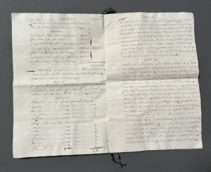 sur papier, [1] page de titre, 10 pages ½ écrites. 2. Inventaire général tant des marchandises fabriquées, celles qui sont aux mains des ouvriers, soye, laine, fil, cotton, effets, argent, dettes actives qui sont dues, ustencilles & meubles, et enfin des dettes passives de la Manufacture Royale de Bourges au 31 Xbre 1759. In-folio, [10] feuillets réunis par 2 lacets de satin vert, soit 19 pages de tableaux (mouillure claire dans la marge intérieure). Soit 2 pièces.