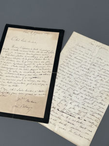 [Autographe]. ANTOINE (Marie Zoé, née Blanqui). Ensemble de 2 lettres autographes signées. - Lettre adressée à un « Excellent ami » ; Paris, 26 février 1872. 3 pages ½ in-8° (pli en 4, déchirure sans mq.). Belle et importante lettre où il...