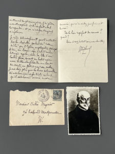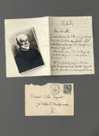[Autographe]. HUYSMANS (Joris-Karl). Lettre autographe signée, [adressée à l'abbé Mugnier]. Vendredi, [cachet du 10 juillet 1896]. 2 pages ½ in-12, enveloppe autographe. Il informe son destinataire qu'il vient « d'écrire la lettre, en y...