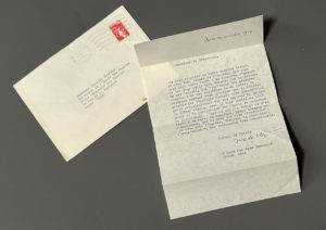[Autographe]. LE CLÉZIO (Jean-Marie Gustave). Lettre dactylographiée signée, date autographe. Adressée à [Jacques Monfrin, Directeur de l'Ecole des Chartes]. Nice, 30 octobre 1978. Une page in-8° ; enveloppe. Il évoque sa thèse et en...