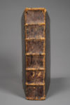 f. (fol. 1 non chiffré), f. 2-470 (avec erreurs), fig., basane brune ancienne, dos modestement renouvelé (défauts dont dos frotté, mors fendus, coins usés ; premiers ff. remontés, petits trous et taches au titre réenmargé au v°, traces digitales en marges). Importante édition incunable illustrée de la Vulgate latine, établie par Bernardinus Gadolus, et accompagnée de commentaires dus notamment à Walafrid Strabon, Anselme de Laon et Nicolas de Lyre. L'une des toutes premières Bibles italiennes illustrées. Ce volume renferme seulement le premier tiers de l'ouvrage, cette Bible complète doit comporter 14 et 1498 feuillets, elle était foliotée en continu, et sa répartition en volumes n'avait pas été conçue par l'éditeur mais laissée à la discrétion de l'usager. Ce volume renferme les prolégomènes, puis se déroule à partir de la Genèse jusqu'au livre d'Esther. Titre en rouge et noir, avec la marque de l'imprimeur gravée sur bois montrant saint Pierre accompagné de la mention « Tu es Petrus ». Texte sur 2 colonnes avec glose juxtalinéaire et encadrée d'un ample commentaire. L'illustration se compose de figures gravées sur bois dans le texte, de taille variable, les plus grandes sur une demi-page. Signatures : a8 b6 c8-z8 [et]8 [con]8 [rum]8 aa8-dd8 ee6 ff6 (ff6 blanc) gg8-rr8 ss6-vv6 xx8-zz8 [et][et]8 [con][con]8 [rum][rum]8 aaa8-kkk8. (ISTC ib00608000).