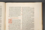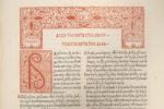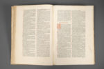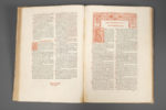 1499]. In-folio, [sign. [alpha] 9 (sur 10), [bêta-rho] 8, [thêta 3 f. sur 8] (i.e. 140 f.), velin ivoire probablement du XVIIIe s., dos à 5 nerfs, titre à l'encre, tranches rouges, étiq. modernes en tête du dos et au plat sup. (accroc au bord du plat inf., 2 coins usés, répar. anc. au plat sup.) Monument précurseur de la typographie grecque, réalisé à Venise par Zacharias Callierges, avec l'aide technique de Nicolaus Blastos, papetier, et le soutien financier d'Anna Notaras, tous trois compatriotes originaires de Crète. Le texte composé sur 2 colonnes de 50 lignes est imprimé en rouge et noir ; il comporte de nombreuses initiales, et un bandeau en tête de chaque chapitre, le tout gravé sur bois et tiré en rouge. Exemplaire qui renferme un peu plus de la première moitié de cet ouvrage : à un feuillet près (alpha 5) il comporte tout le texte depuis l'introduction jusqu'à la lette iota incluse, et le début de kappa. Il manque le f. alpha 5, le cahier sygma ; delta 1 et 8 sont intervertis ; les 3 f. têta à la fin sont tachés et il manque des marges et qq. lettres à deux d'entre eux. Outre qq. salissures au titre, une petite mouillure claire et sporadique dans qq. marges intérieures, le volume est plutôt frais, et grand de marges (h = 378 mm.). (ISTC ie00112000 ; GW 9426 ; Pellechet 4629; Proctor 5644).